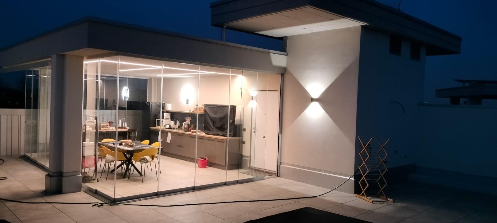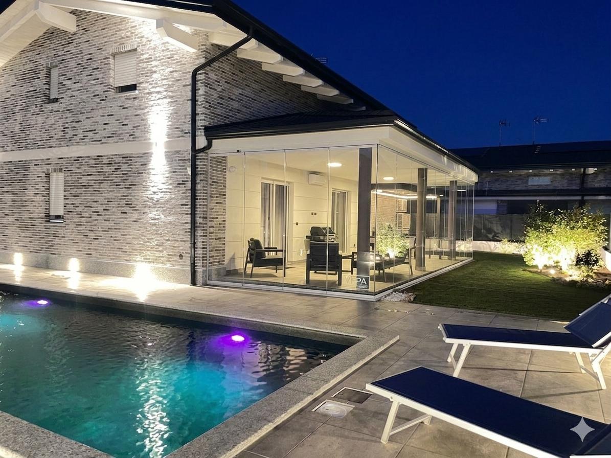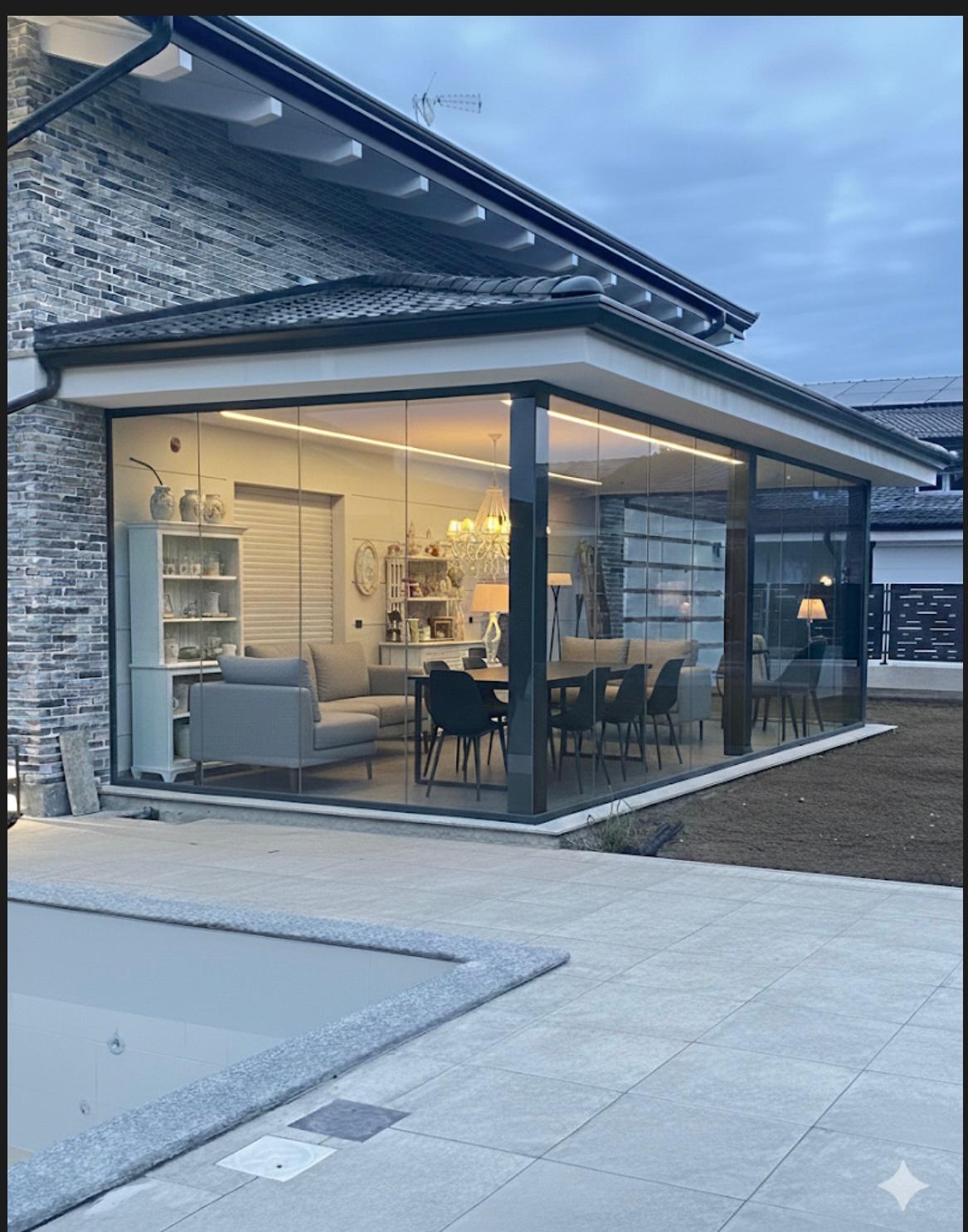 Ogni sistema è realizzato su misura, con materiali di alta qualità e vetri temperati di sicurezza che garantiscono isolamento termico e acustico ottimale. Le soluzioni scorrevoli o impacchettabili permettono di aprire completamente l’ambiente, creando una perfetta continuità tra interno ed esterno, senza rinunciare alla protezione da vento, pioggia e rumore.